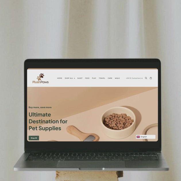 A soothing Shopify website for a pet accessories brand, designed with soft, branded colors and visuals that emphasize comfort and safety for pet owners.